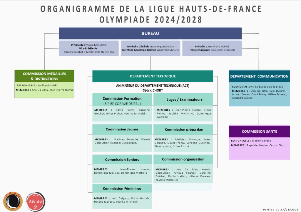 La Ligue Aikido Hauts-de-France est administrée pour l’olympiade 2024/2028 par un Comité Directeur composé de 17 membres.